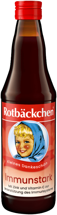 Unser Rotbäckchen Immunstark ist ein Mehrfrucht-Direktsaft aus sorgfältig ausgewählten roten Trauben, Äpfeln, Aronia- und Holunderbeeren sowie Acerolakirschen. Die ergänzten Nährstoffe Zink und Vitamin C unterstützen die normale Funktion des Immunsystems.